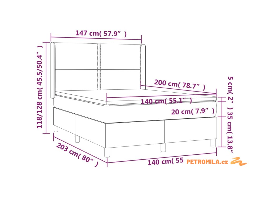 - Rozměry: 140 x 200 x 20 cm (Š x D x V)