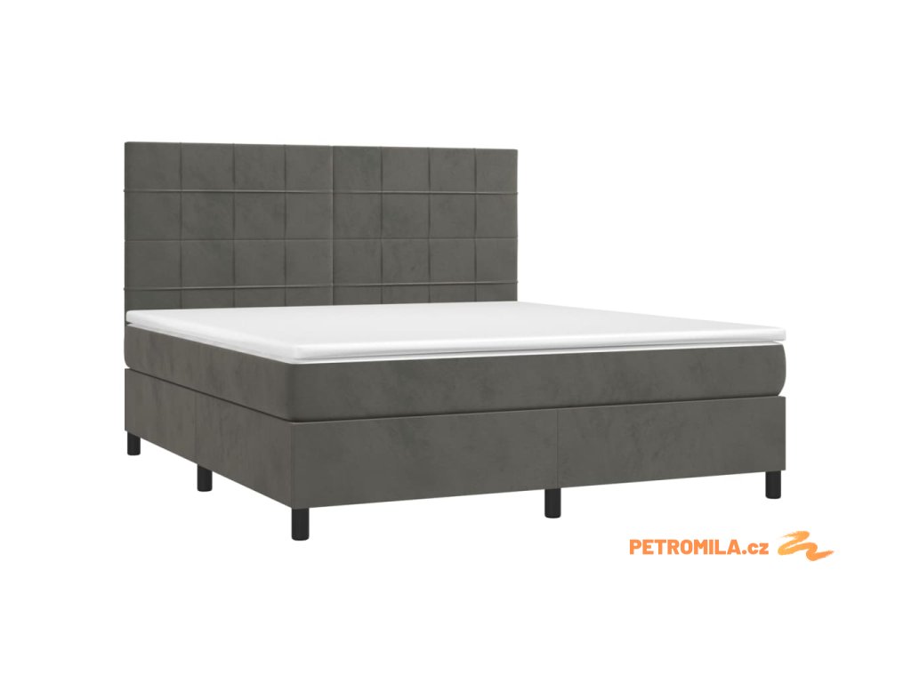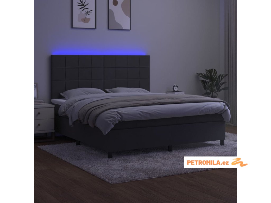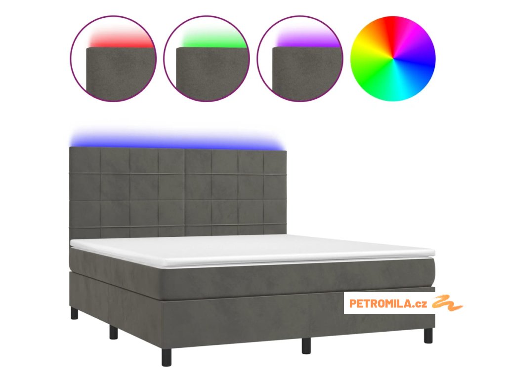 Box spring postel s matrací a LED tmavě šedá 160x200 cm samet