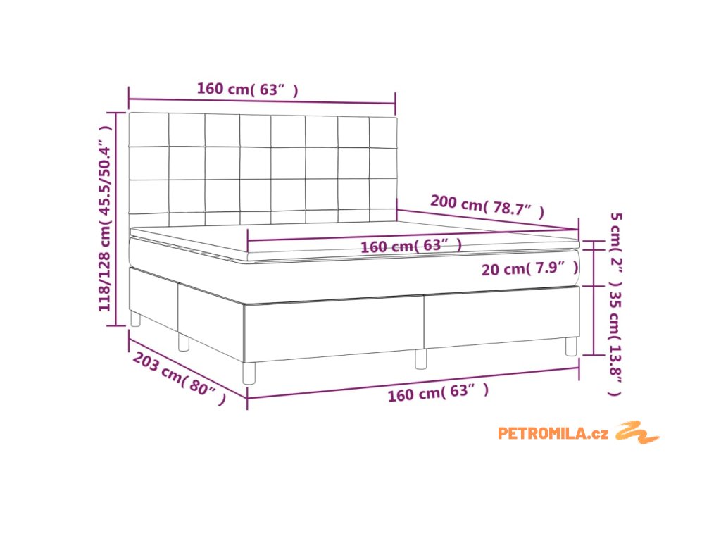 - Celkové rozměry: 160 x 200 x 20 cm (Š x D x V)