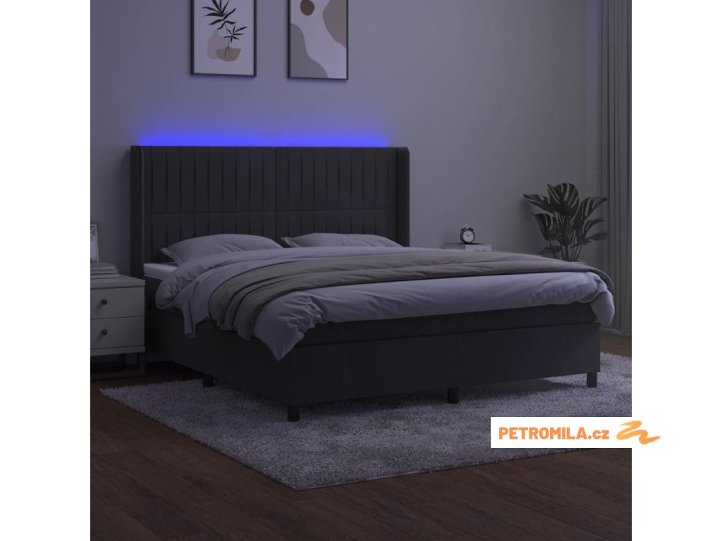 Používejte tuto box spring postel s matrací a LED světly a dopřejte si klidný spánek! Stane se ústředním bodem vaší ložnice.