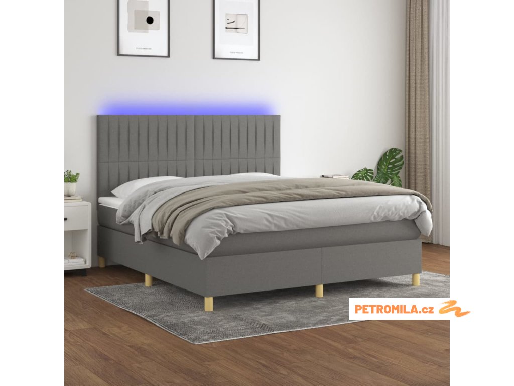 Box spring postel s matrací a LED tmavě šedá 160x200 cm textil