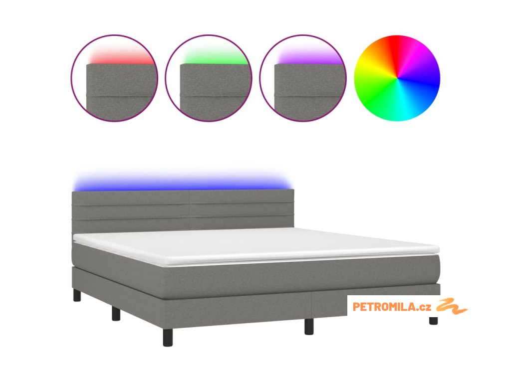 Box spring postel s matrací a LED tmavě šedá 160x200 cm textil