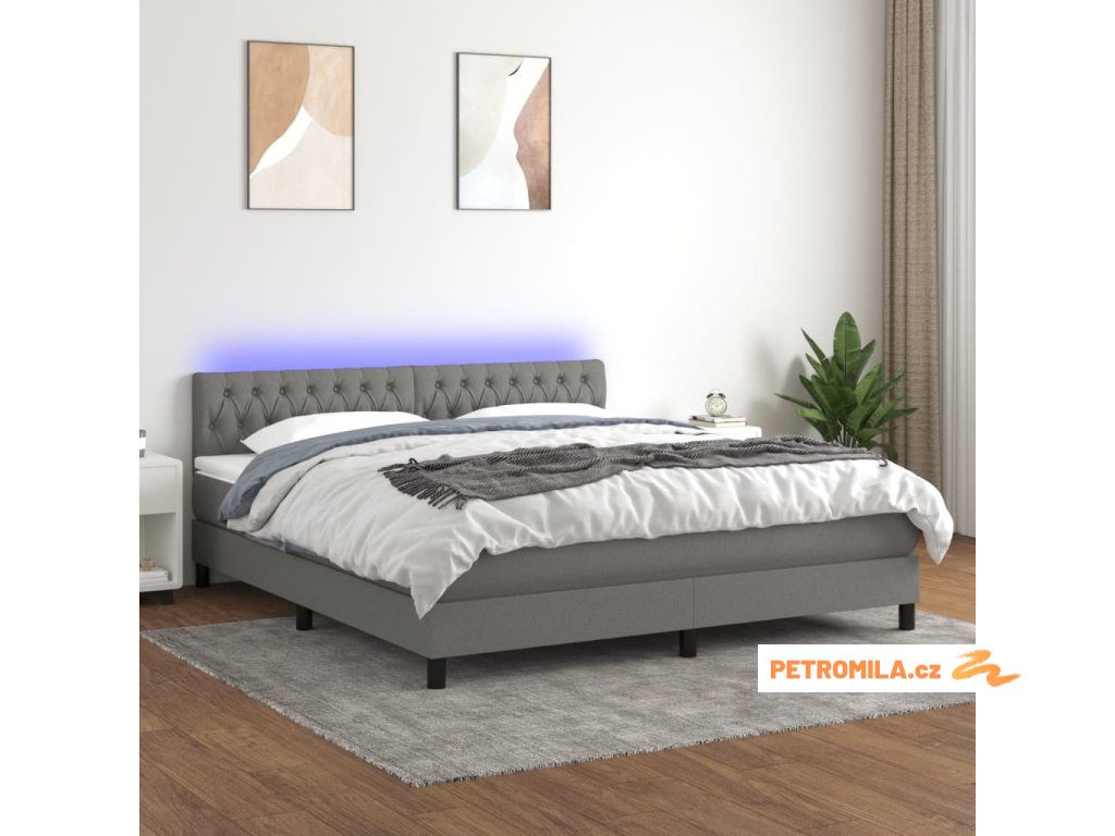 Box spring postel s matrací a LED tmavě šedá 160x200 cm textil