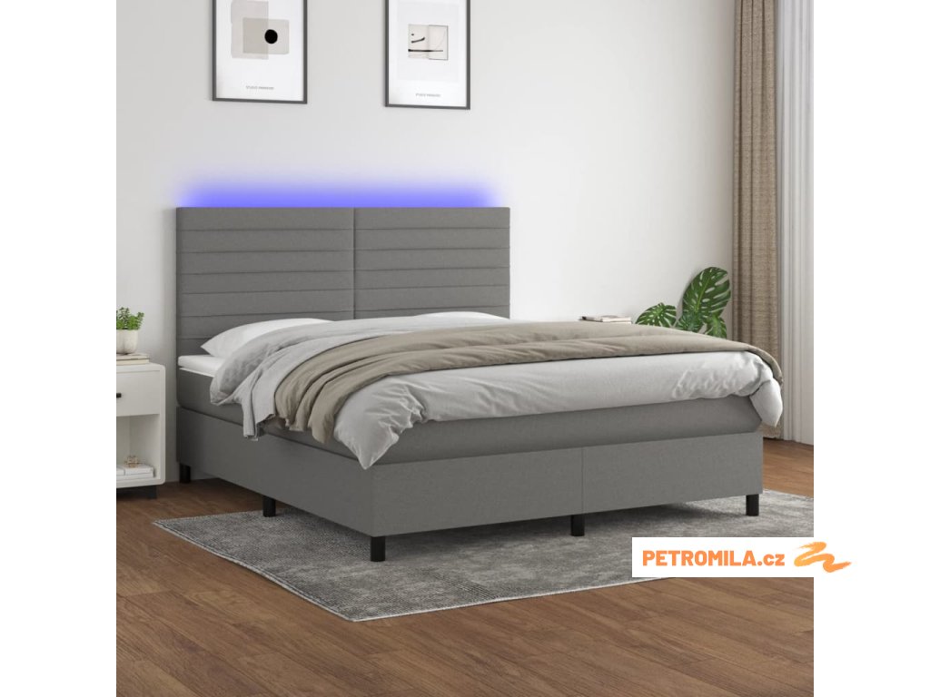 Box spring postel s matrací a LED tmavě šedá 160x200 cm textil