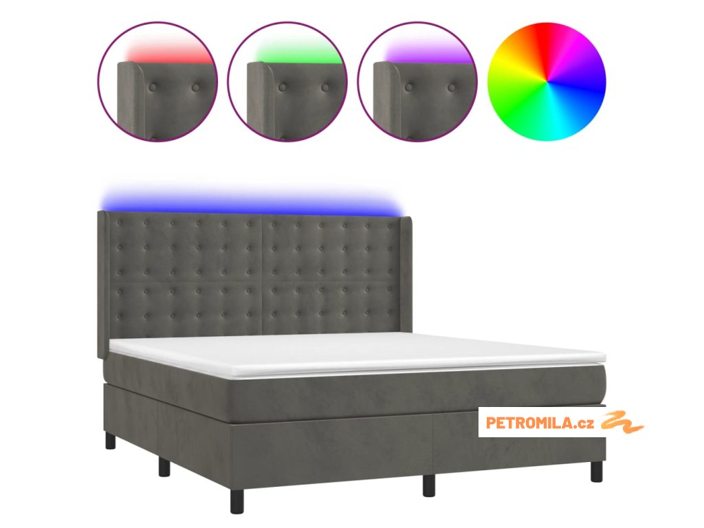 Box spring postel s matrací a LED tmavě šedá 180x200 cm samet