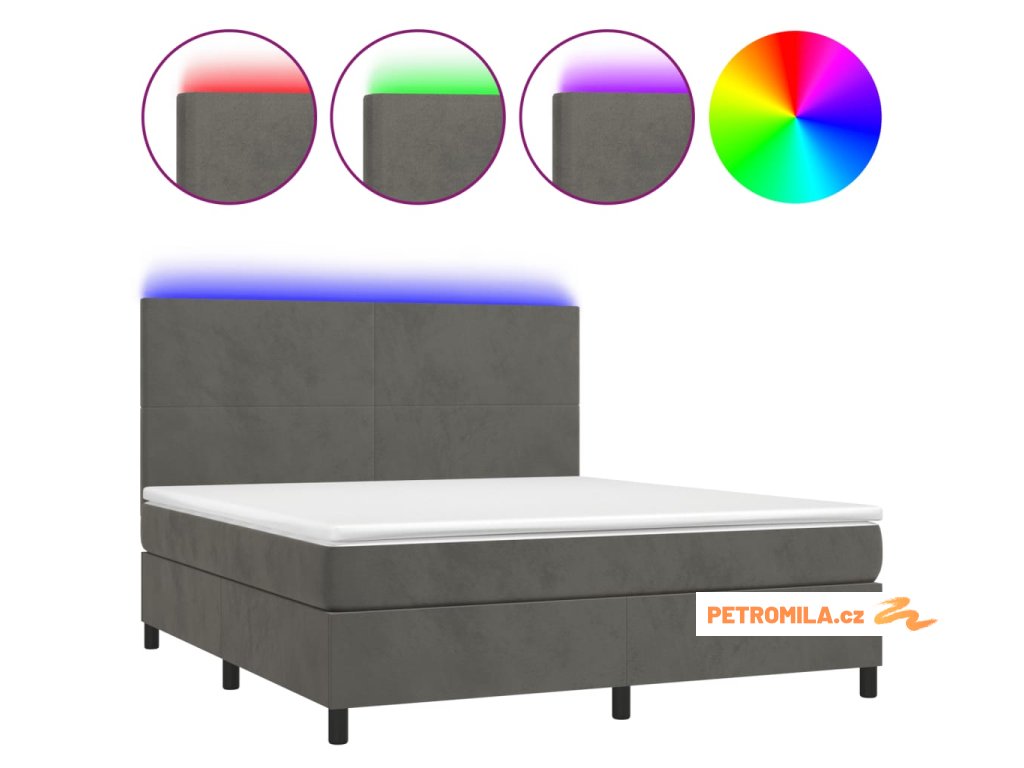 Box spring postel s matrací a LED tmavě šedá 180x200 cm samet