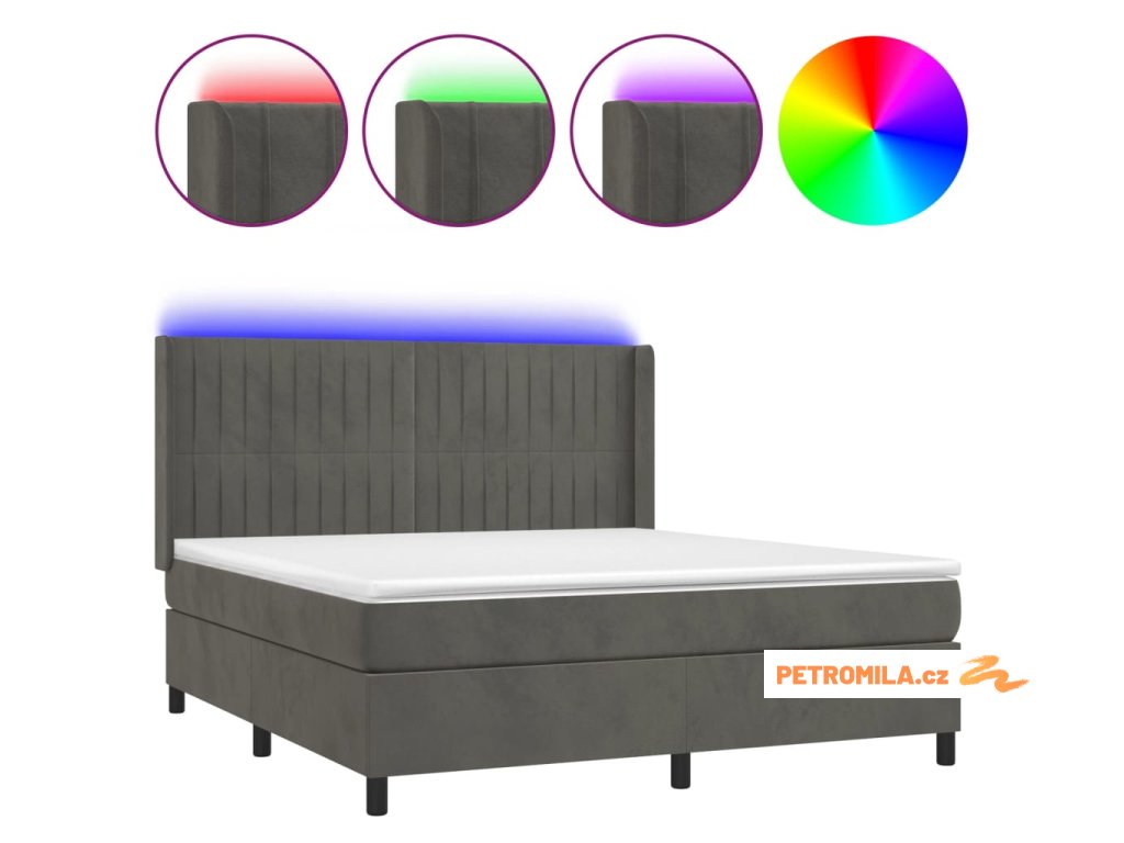Box spring postel s matrací a LED tmavě šedá 180x200 cm samet