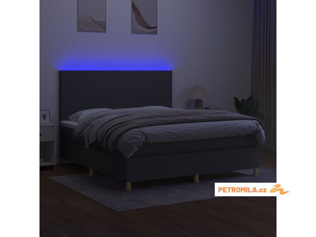 Box spring postel s matrací a LED tmavě šedá 180x200 cm textil