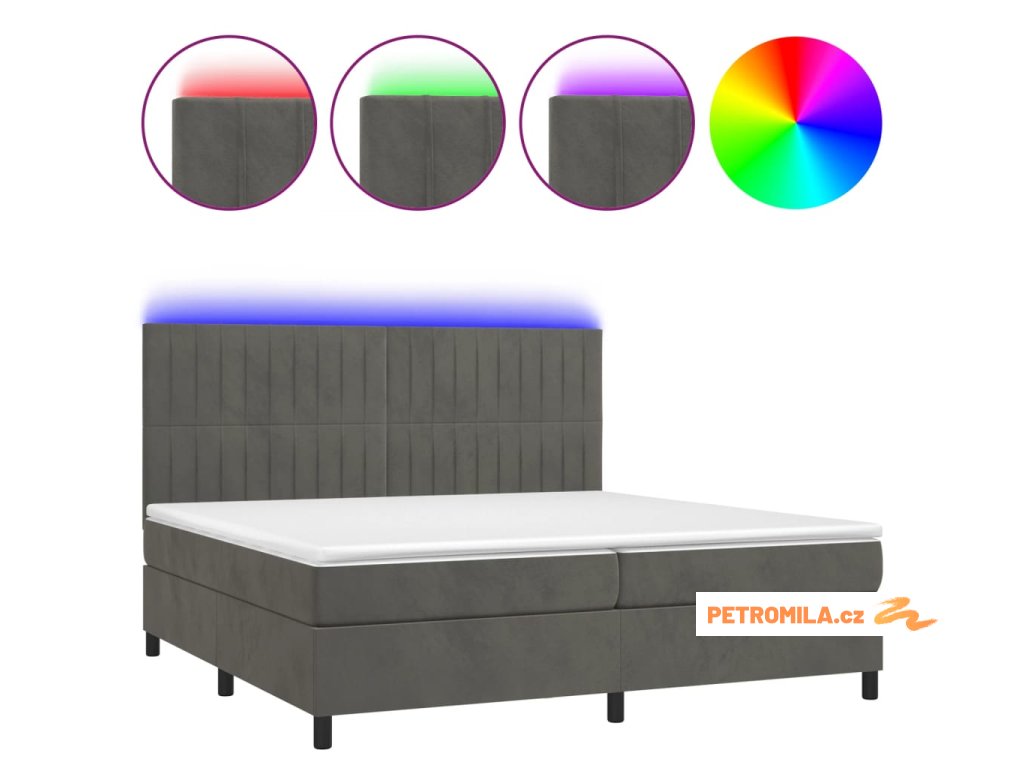 Box spring postel s matrací a LED tmavě šedá 200x200 cm samet
