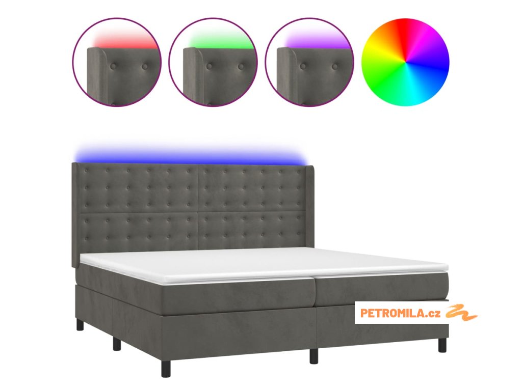 Box spring postel s matrací a LED tmavě šedá 200x200 cm samet