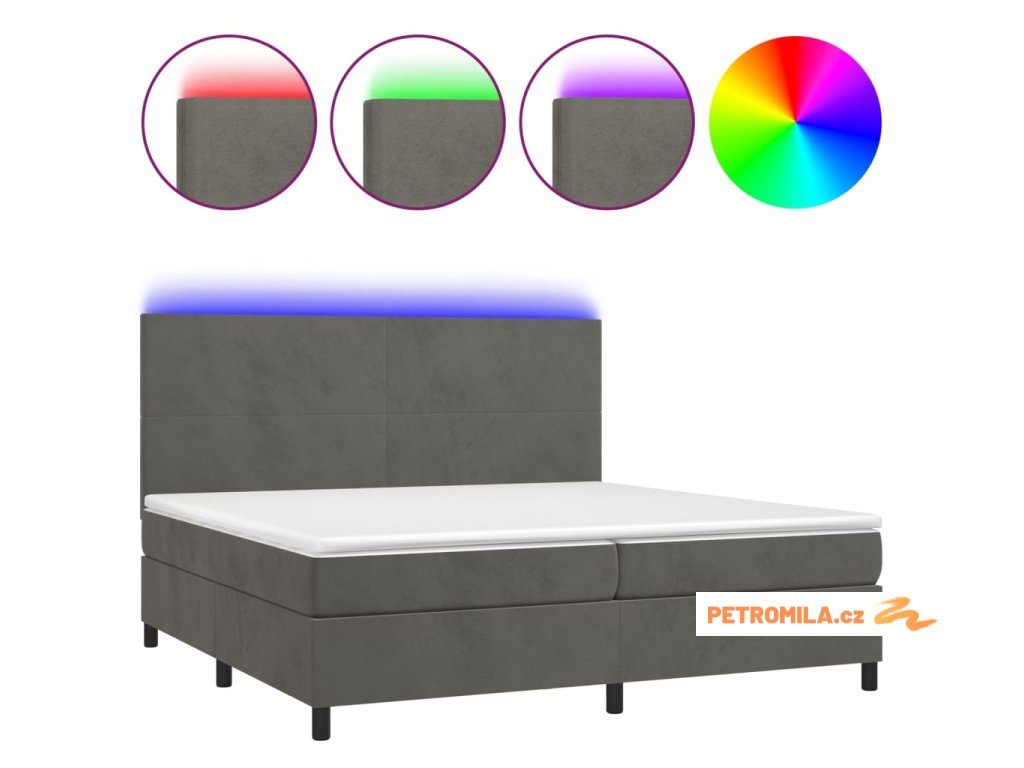 Box spring postel s matrací a LED tmavě šedá 200x200 cm samet