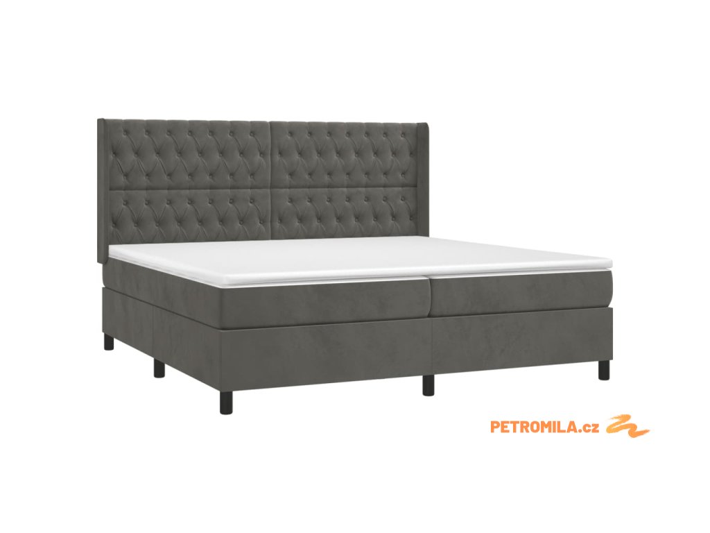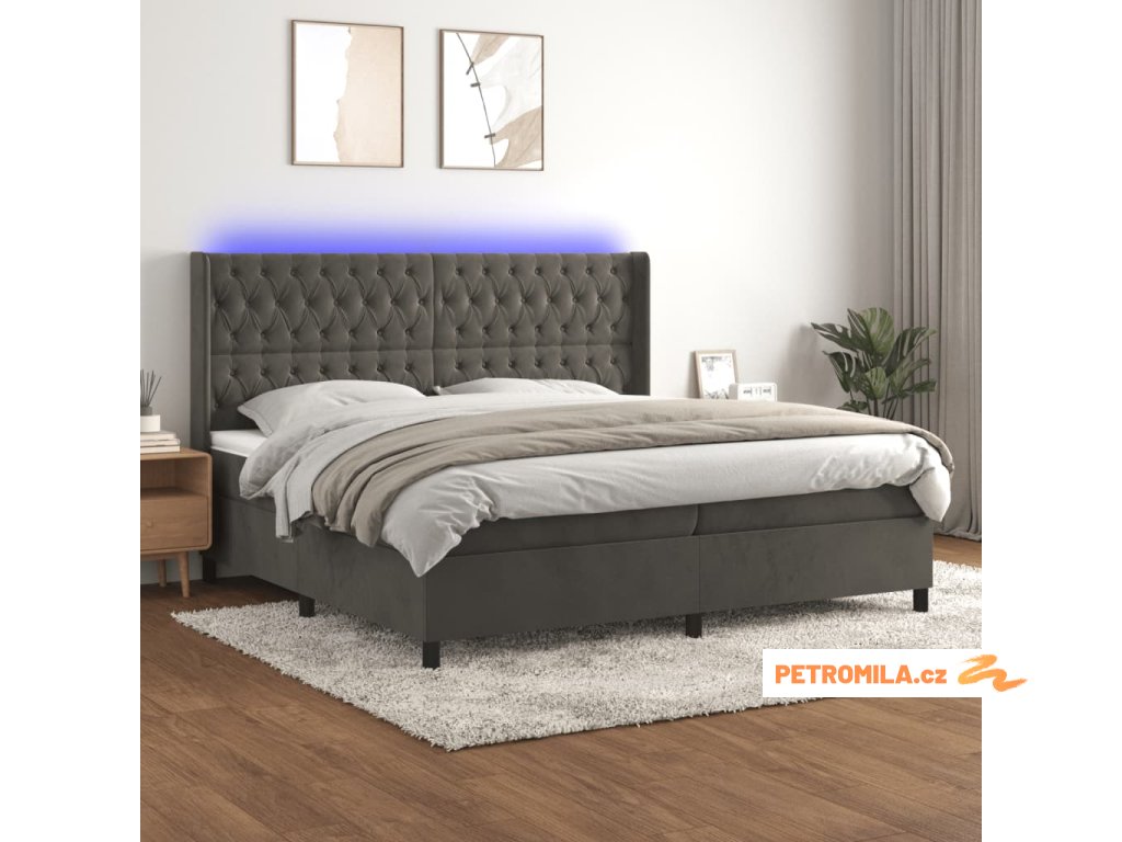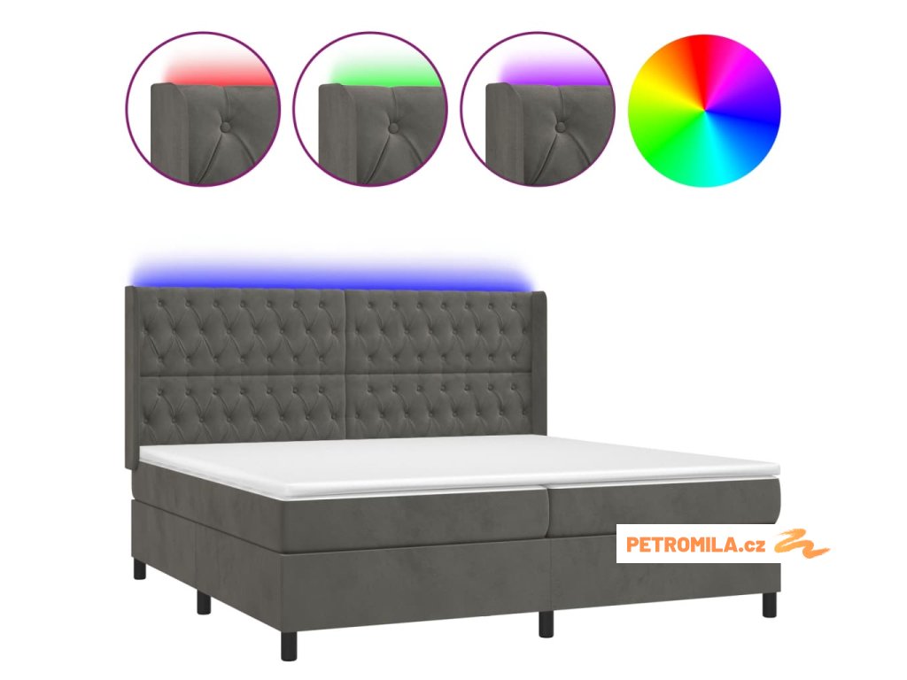 Box spring postel s matrací a LED tmavě šedá 200x200 cm samet