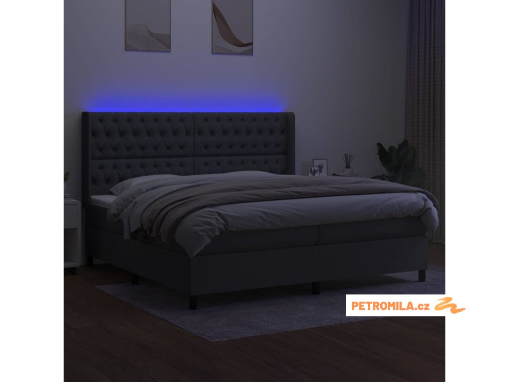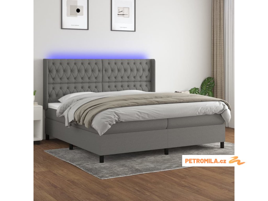 Box spring postel s matrací a LED tmavě šedá 200x200 cm textil