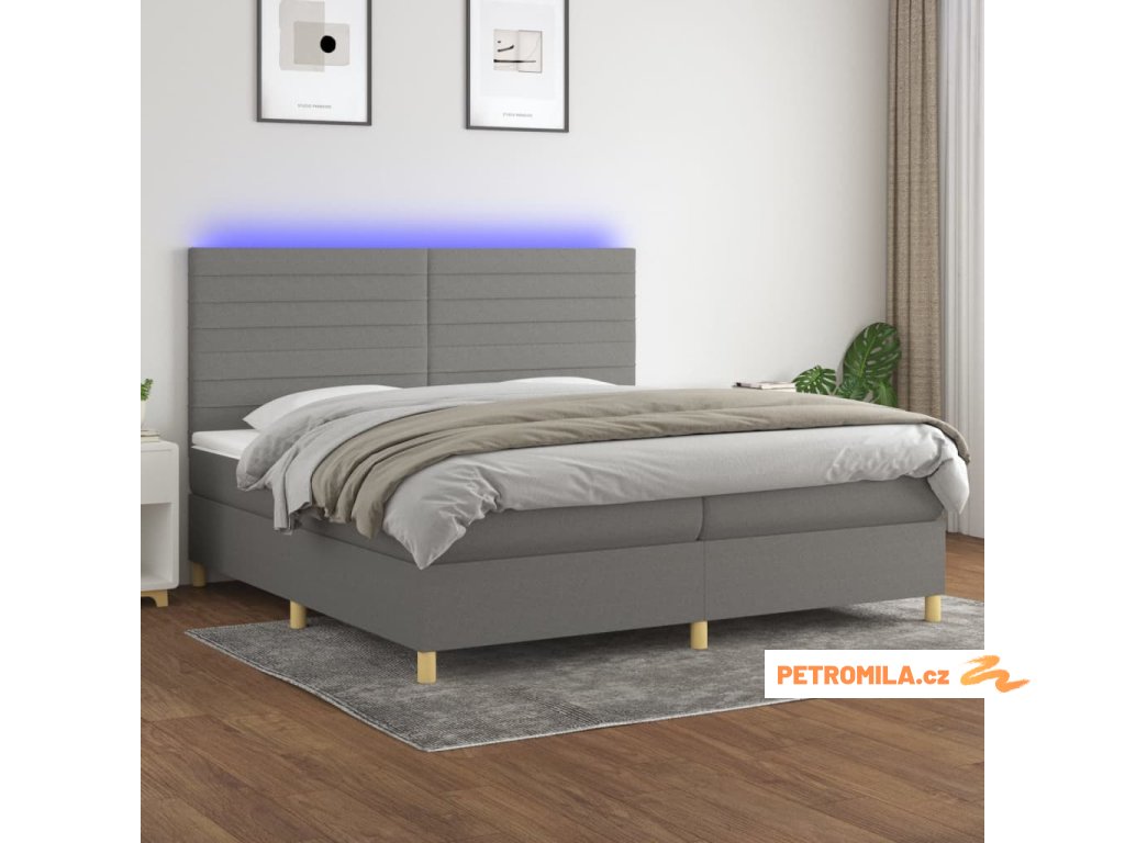 Box spring postel s matrací a LED tmavě šedá 200x200 cm textil