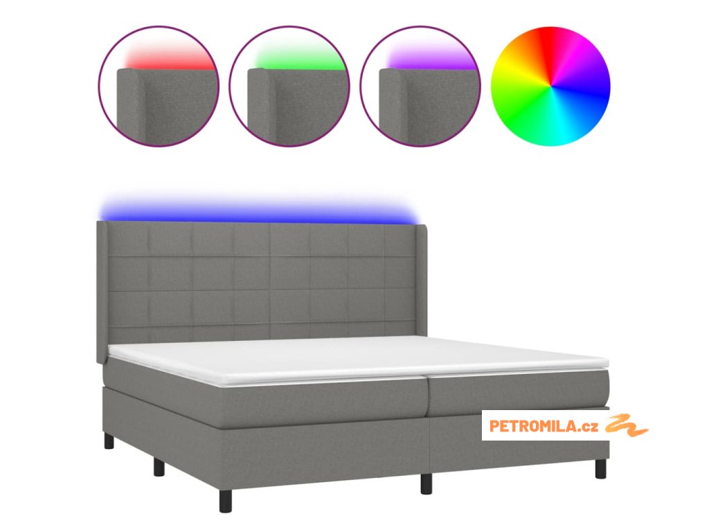 Box spring postel s matrací a LED tmavě šedá 200x200 cm textil