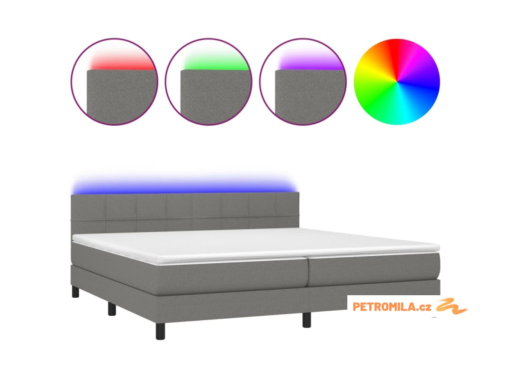 Box spring postel s matrací a LED tmavě šedá 200x200 cm textil