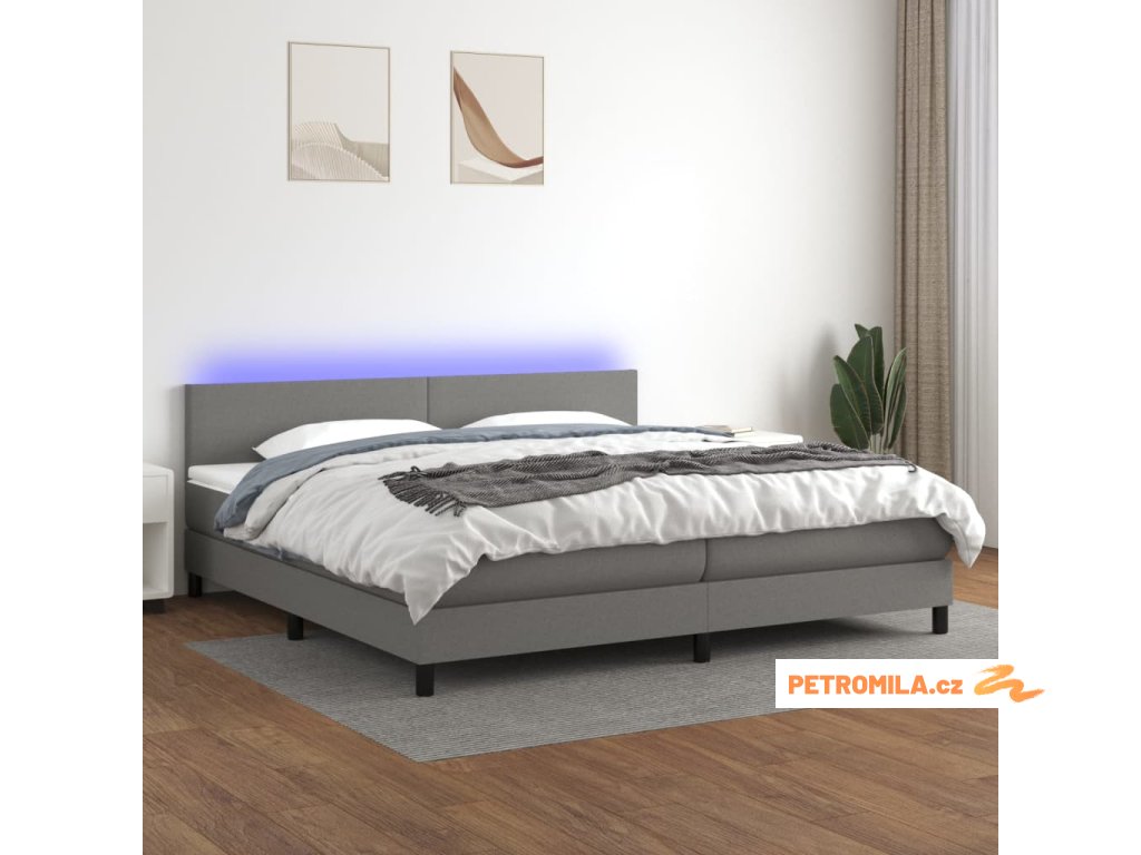 Box spring postel s matrací a LED tmavě šedá 200x200 cm textil