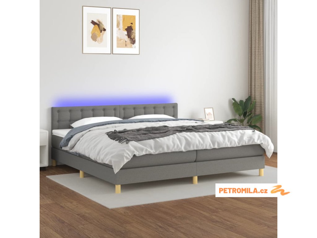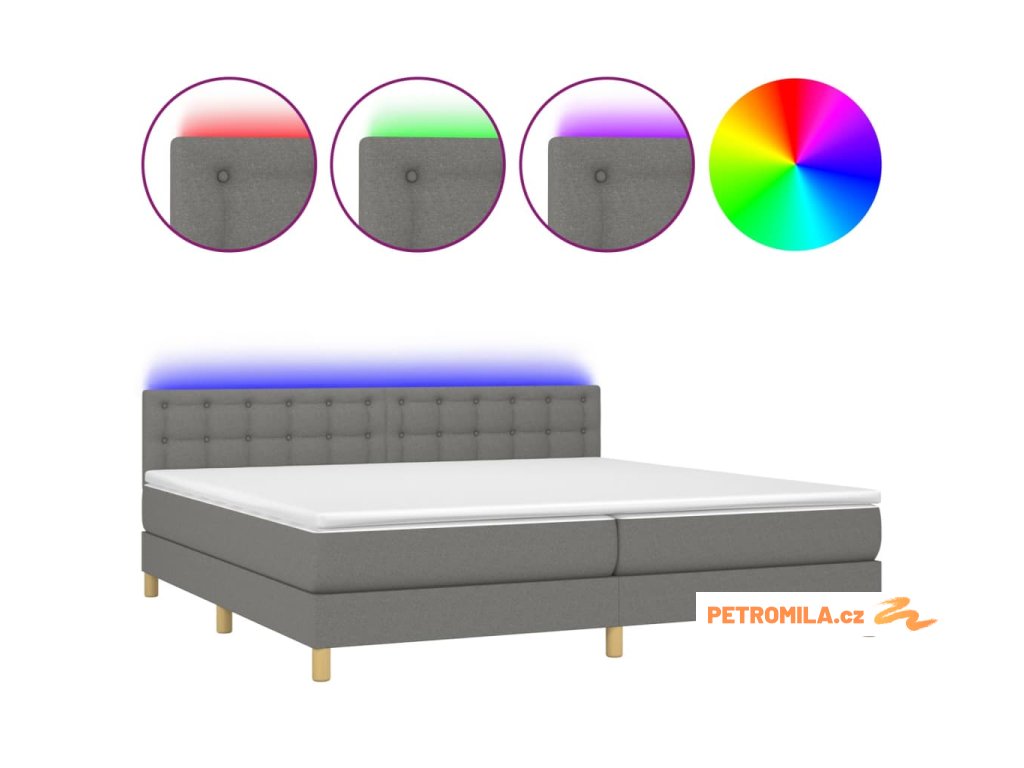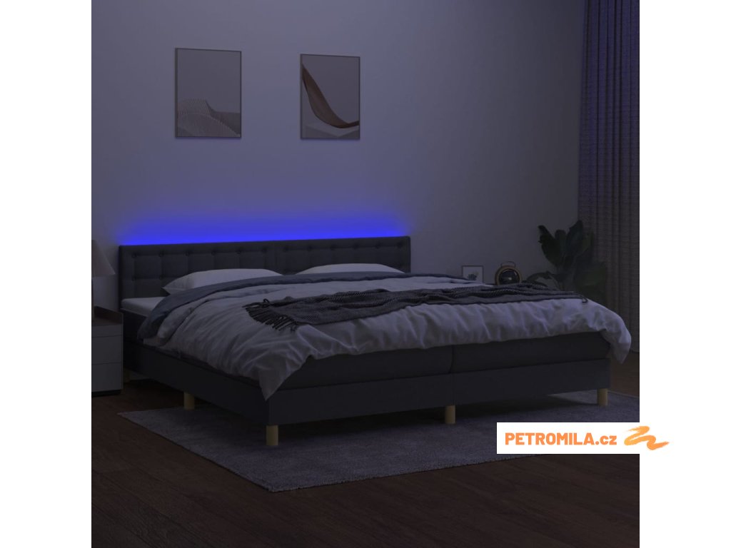 Box spring postel s matrací a LED tmavě šedá 200x200 cm textil