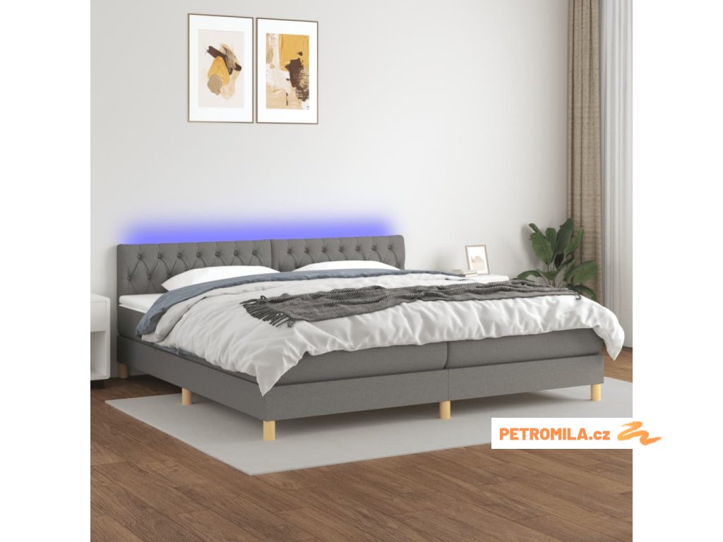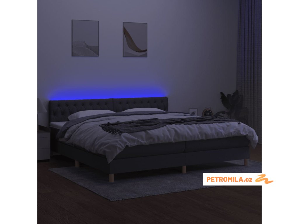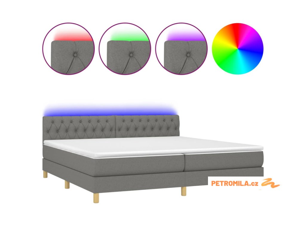 Box spring postel s matrací a LED tmavě šedá 200x200 cm textil
