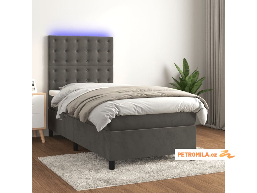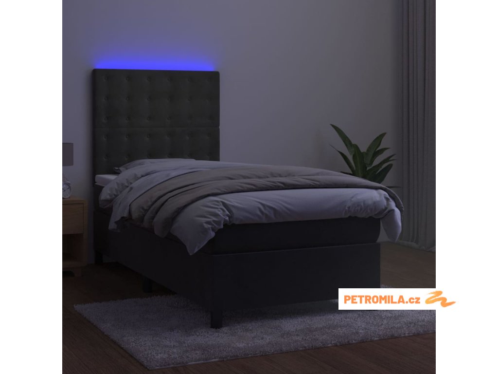 Box spring postel s matrací a LED tmavě šedá 80 x 200 cm samet