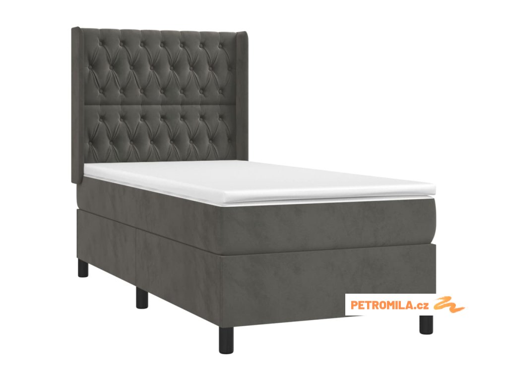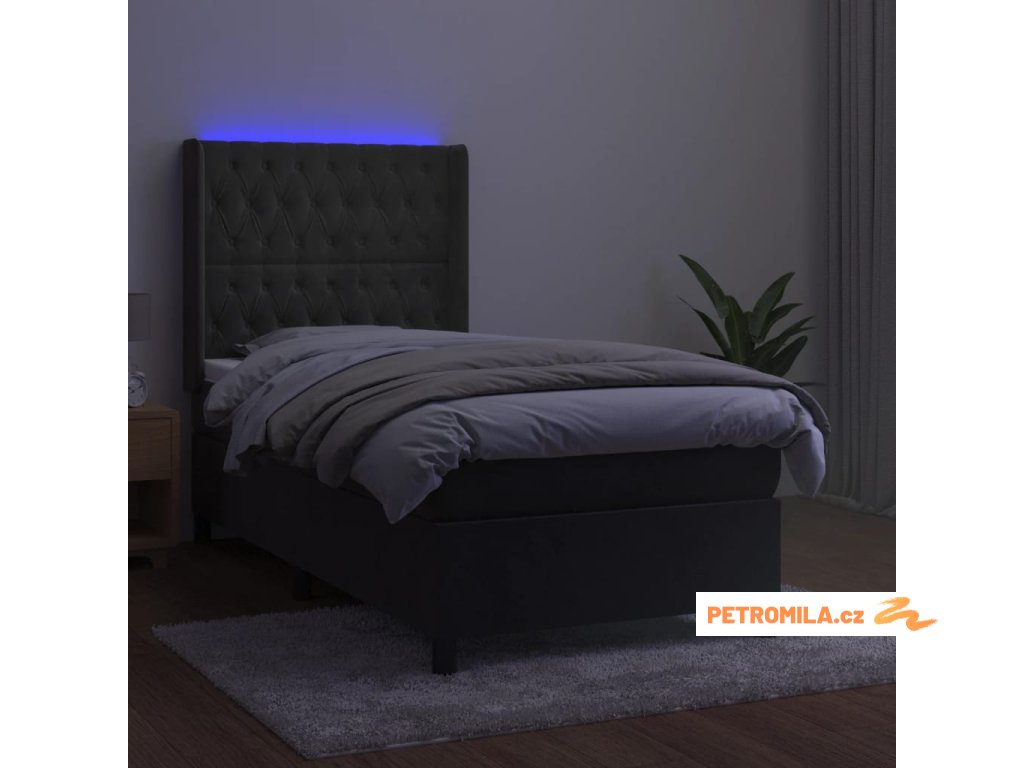 Box spring postel s matrací a LED tmavě šedá 80 x 200 cm samet