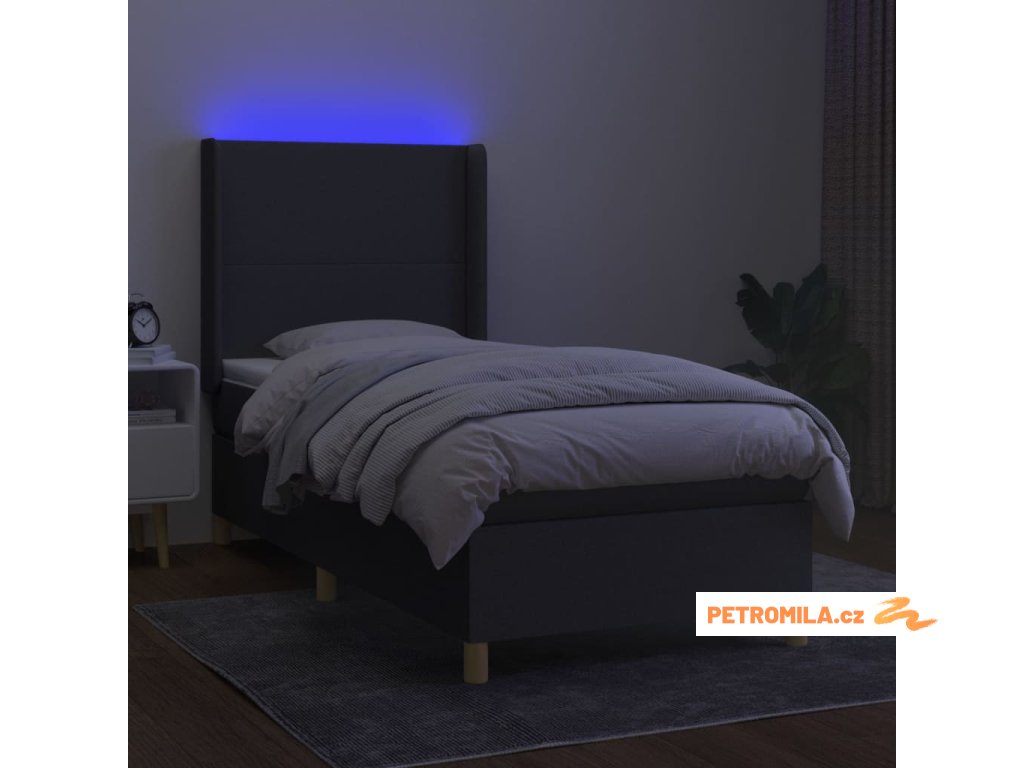 Box spring postel s matrací a LED tmavě šedá 80 x 200 cm textil