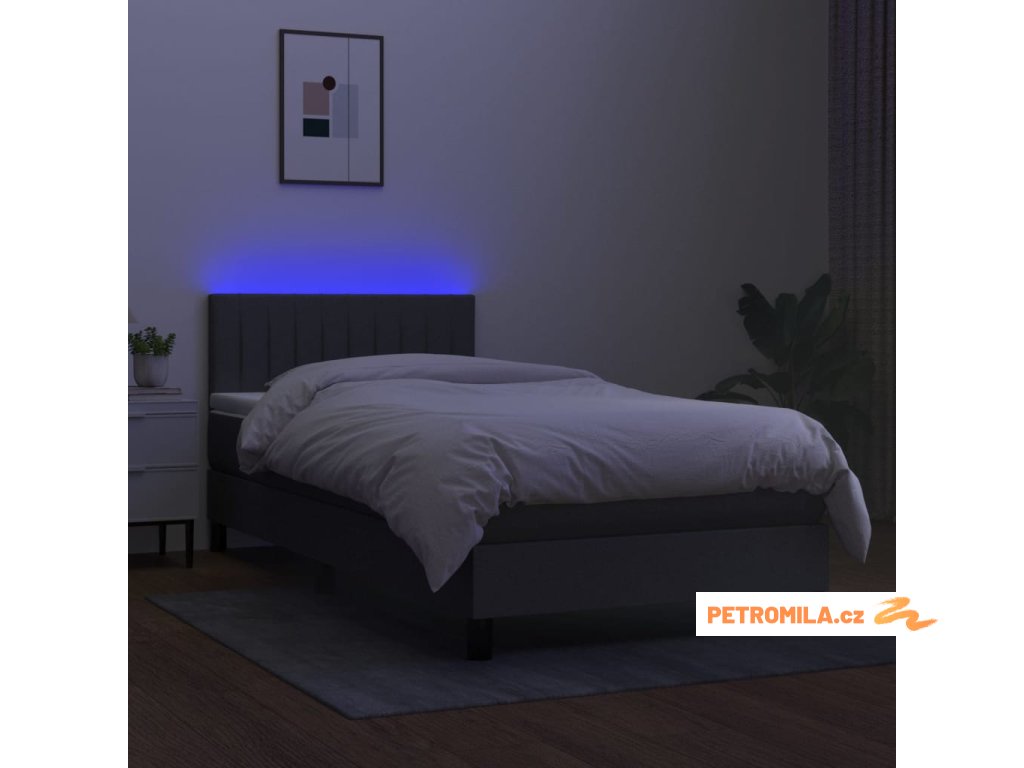 Box spring postel s matrací a LED tmavě šedá 80 x 200 cm textil