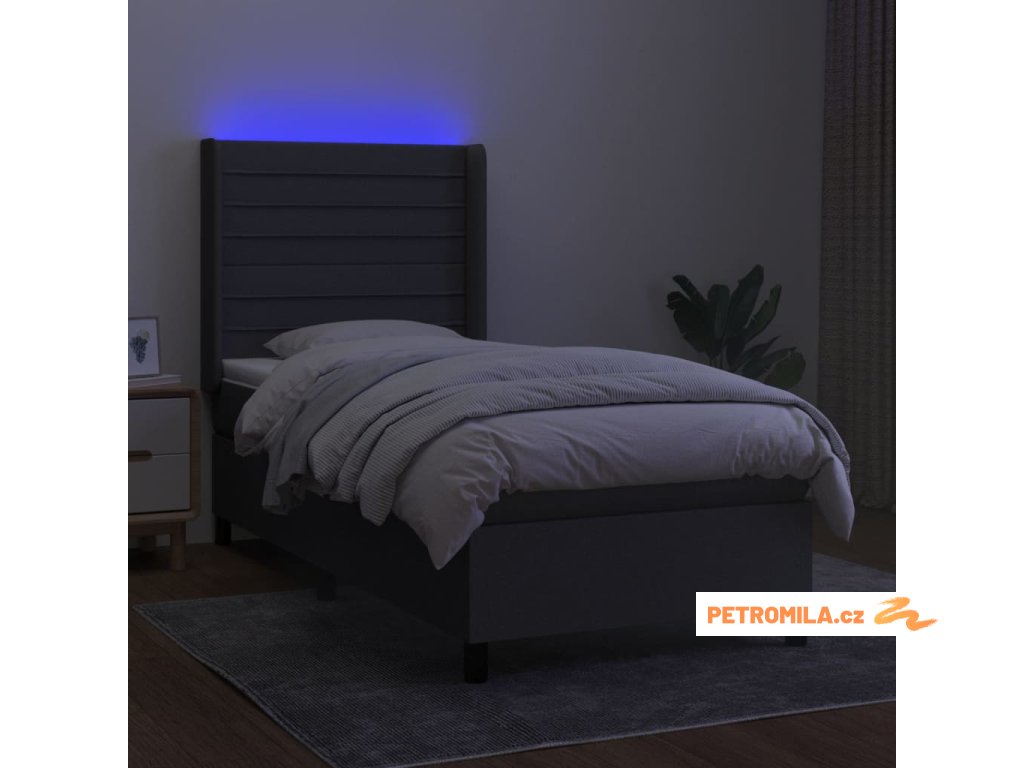 Box spring postel s matrací a LED tmavě šedá 80 x 200 cm textil