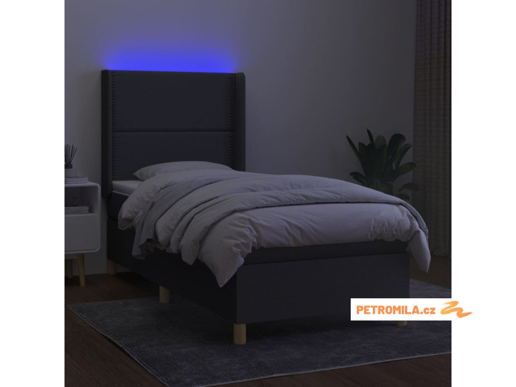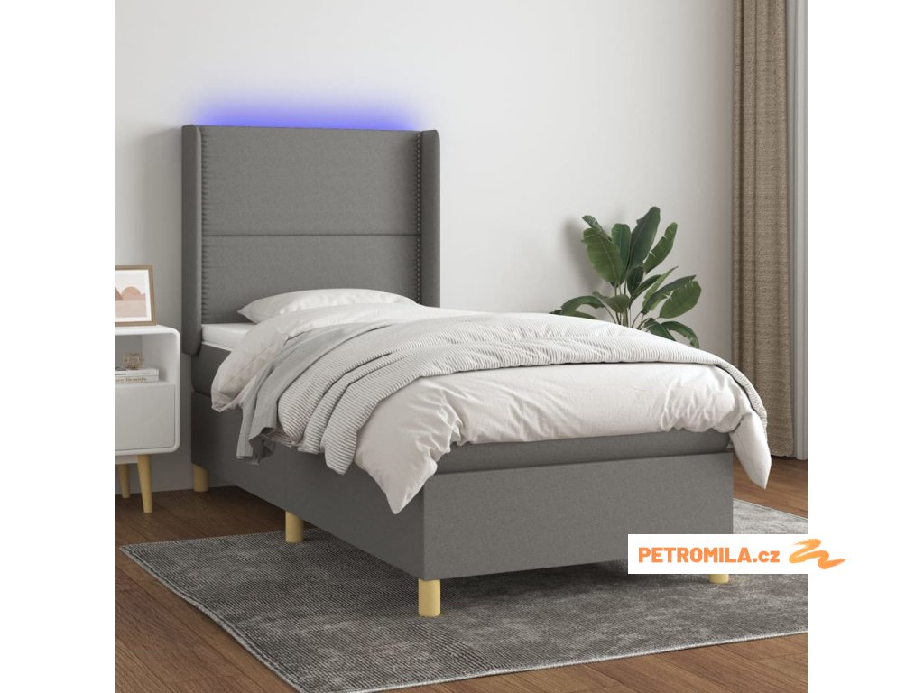Box spring postel s matrací a LED tmavě šedá 80 x 200 cm textil