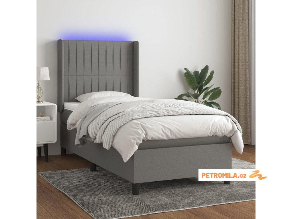 Box spring postel s matrací a LED tmavě šedá 80 x 200 cm textil