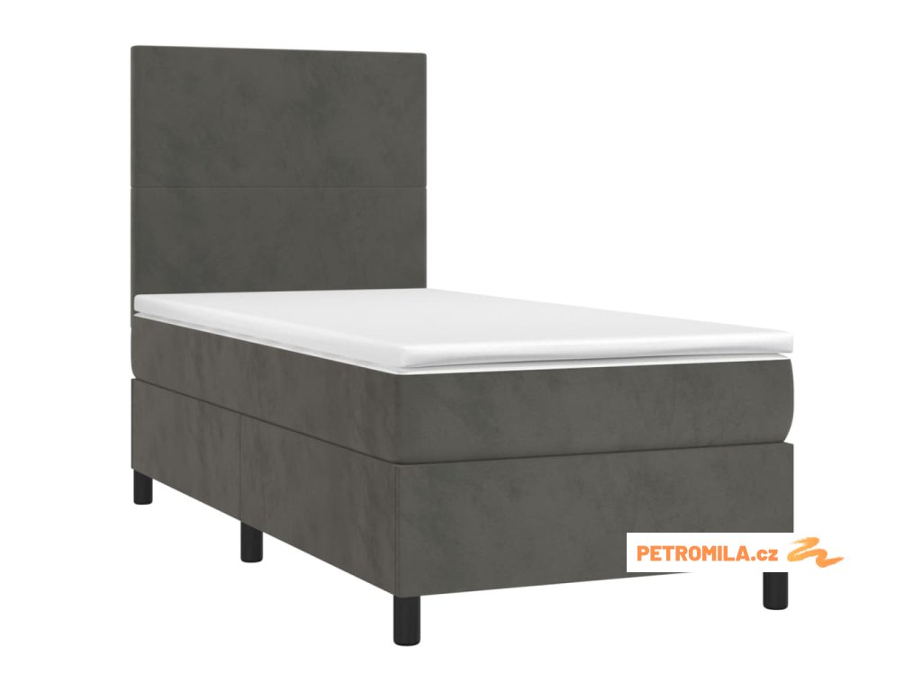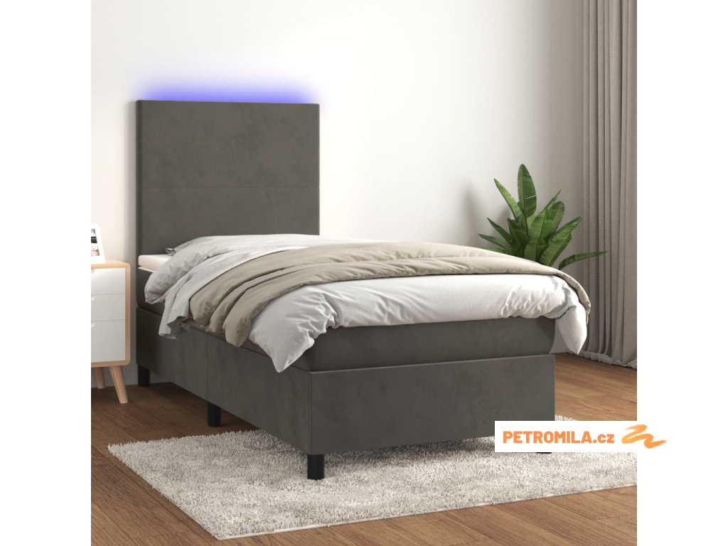 Box spring postel s matrací a LED tmavě šedá 90x190 cm samet