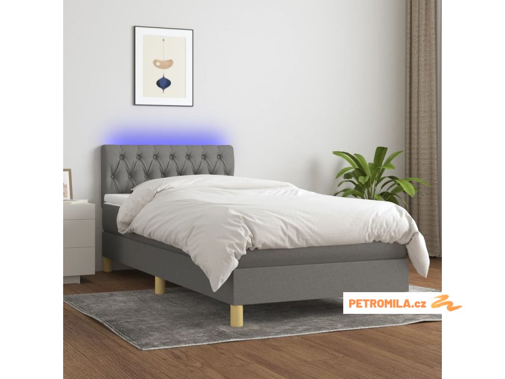 Box spring postel s matrací a LED tmavě šedá 90x190 cm textil