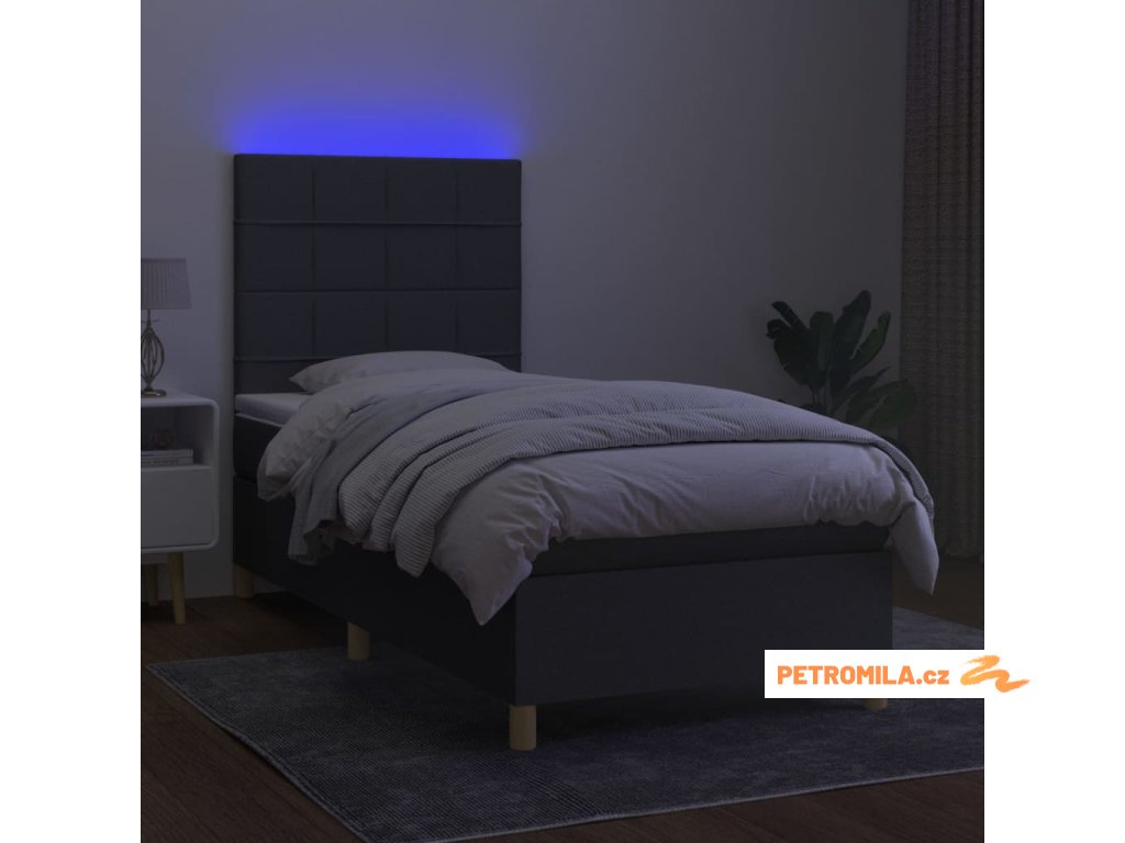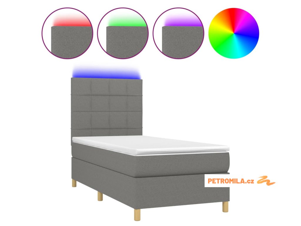 Box spring postel s matrací a LED tmavě šedá 90x190 cm textil