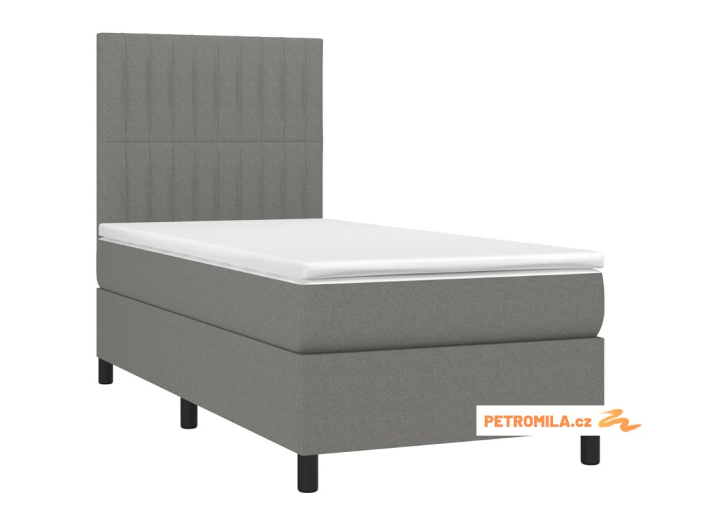 Box spring postel s matrací a LED tmavě šedá 90x190 cm textil