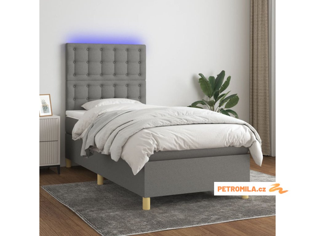 Box spring postel s matrací a LED tmavě šedá 90x190 cm textil