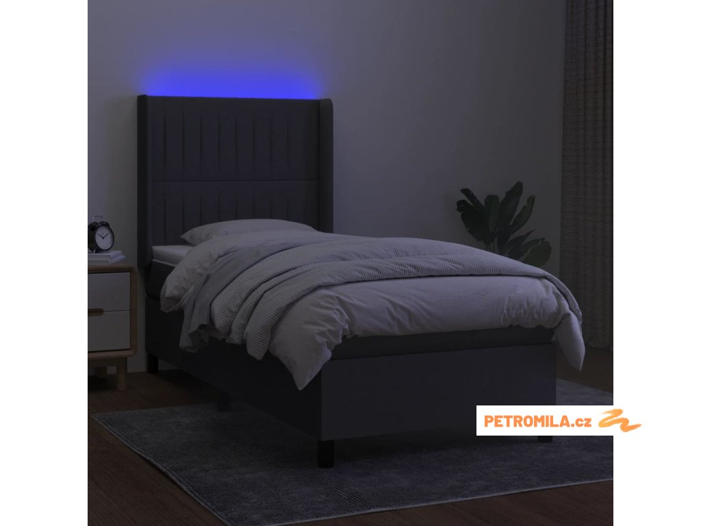 Box spring postel s matrací a LED tmavě šedá 90x190 cm textil