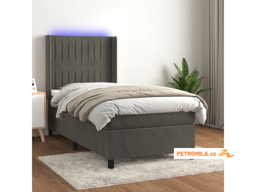 Box spring postel s matrací a LED tmavě šedá 90x200 cm samet
