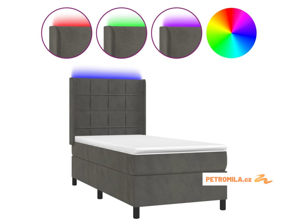 Box spring postel s matrací a LED tmavě šedá 90x200 cm samet
