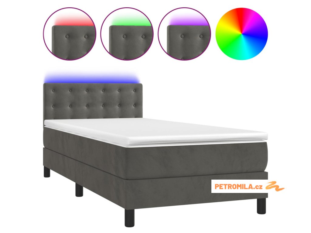 Box spring postel s matrací a LED tmavě šedá 90x200 cm samet