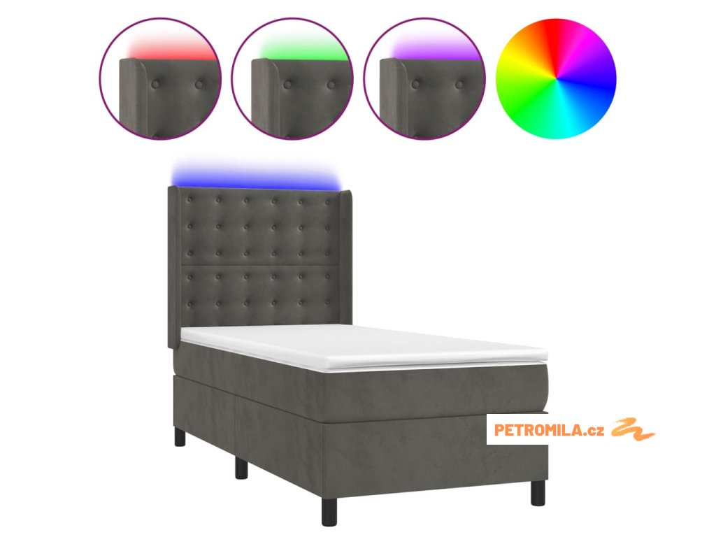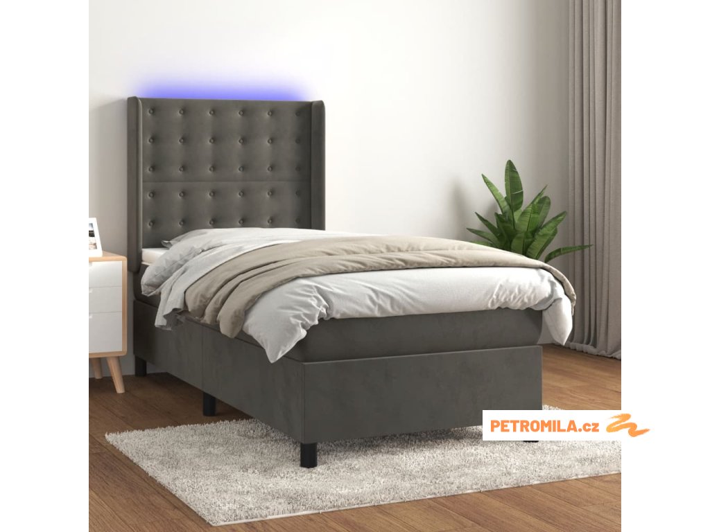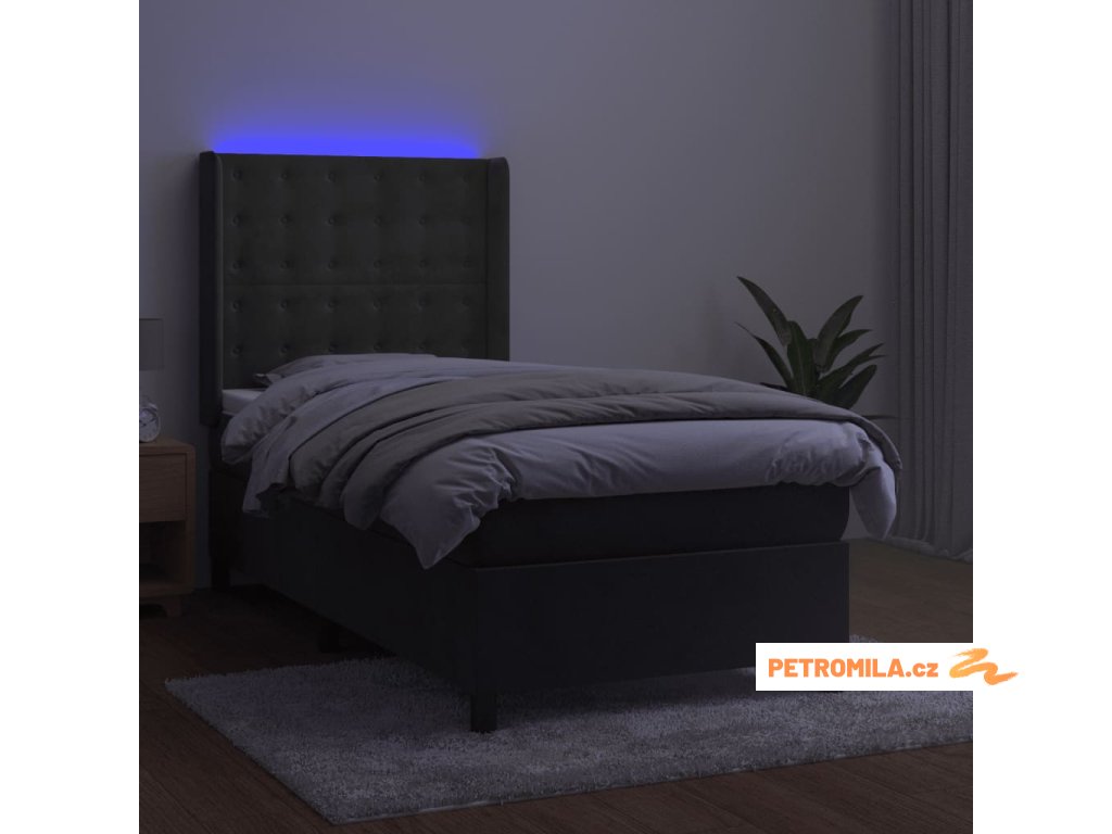 Box spring postel s matrací a LED tmavě šedá 90x200 cm samet
