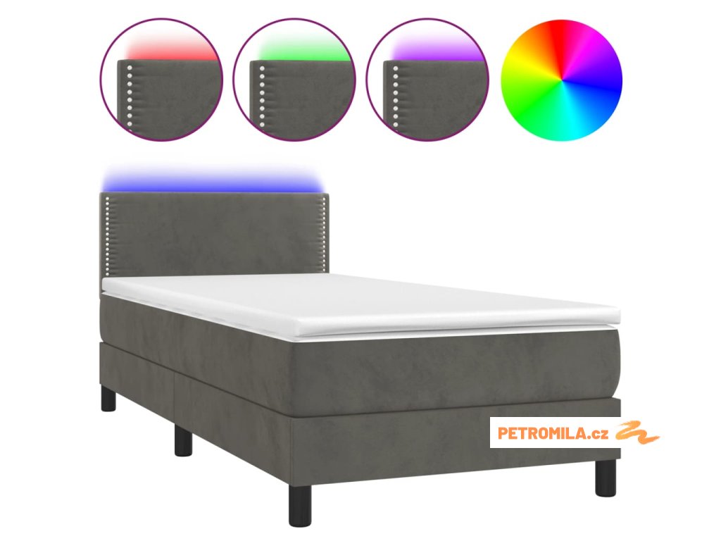 Box spring postel s matrací a LED tmavě šedá 90x200 cm samet