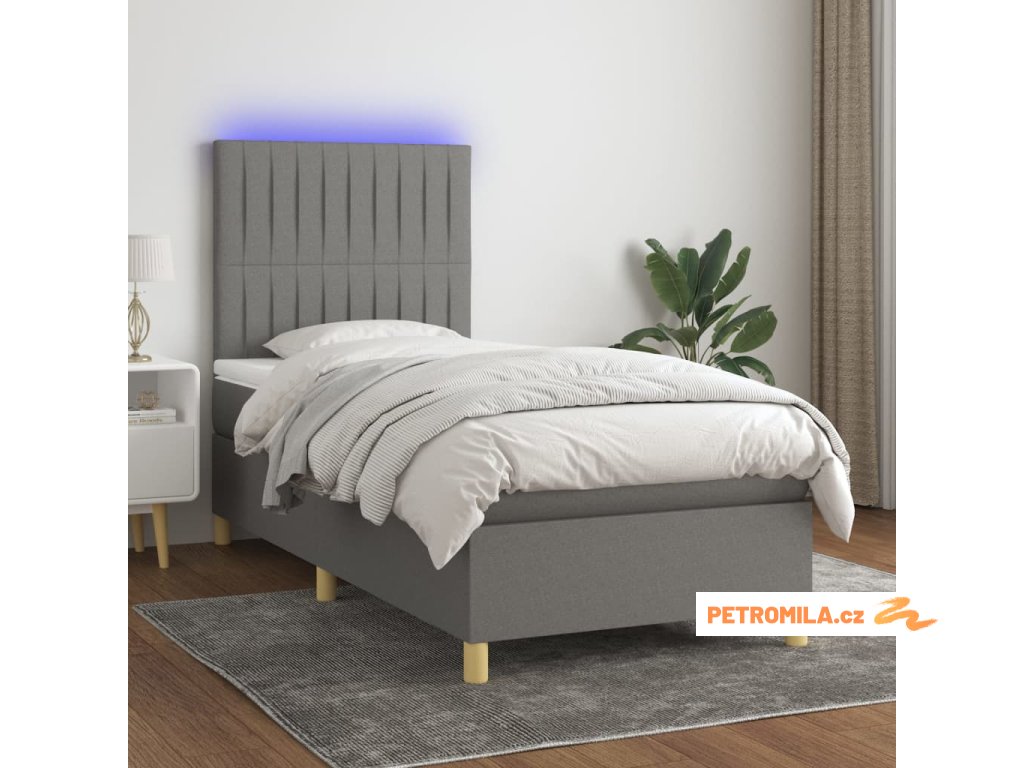 Box spring postel s matrací a LED tmavě šedá 90x200 cm textil