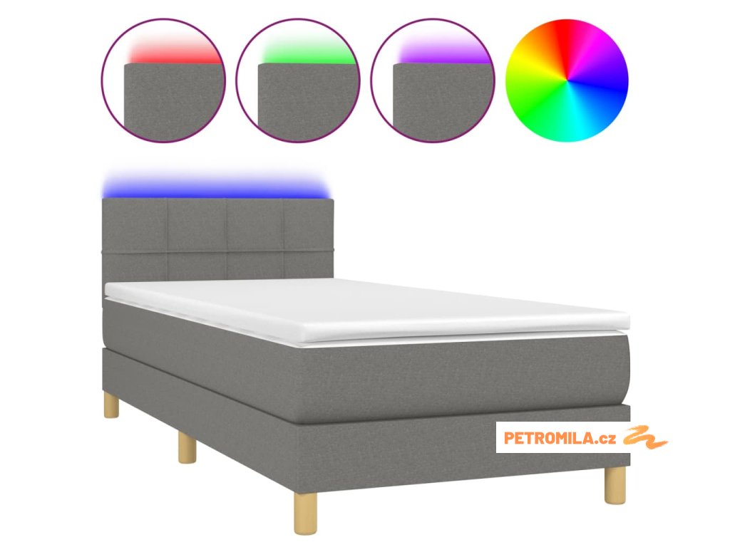 Box spring postel s matrací a LED tmavě šedá 90x200 cm textil