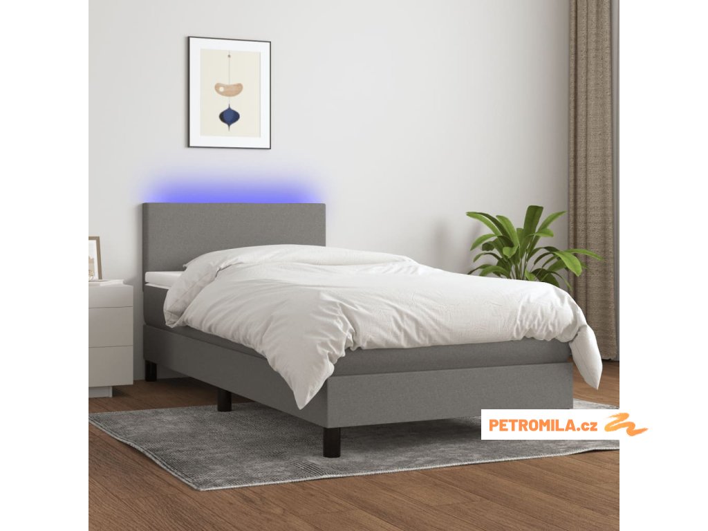 Box spring postel s matrací a LED tmavě šedá 90x200 cm textil