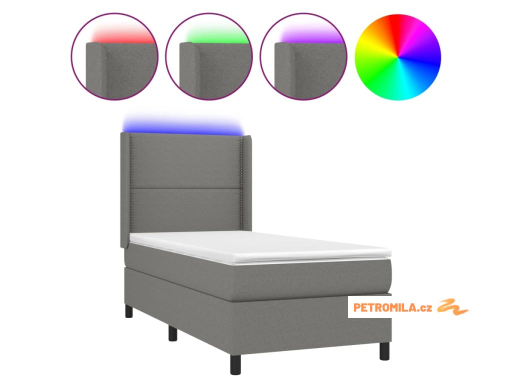 Box spring postel s matrací a LED tmavě šedá 90x200 cm textil
