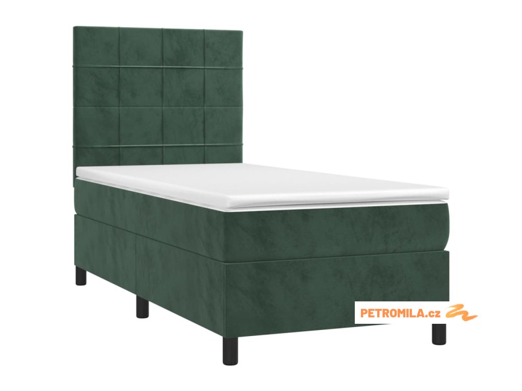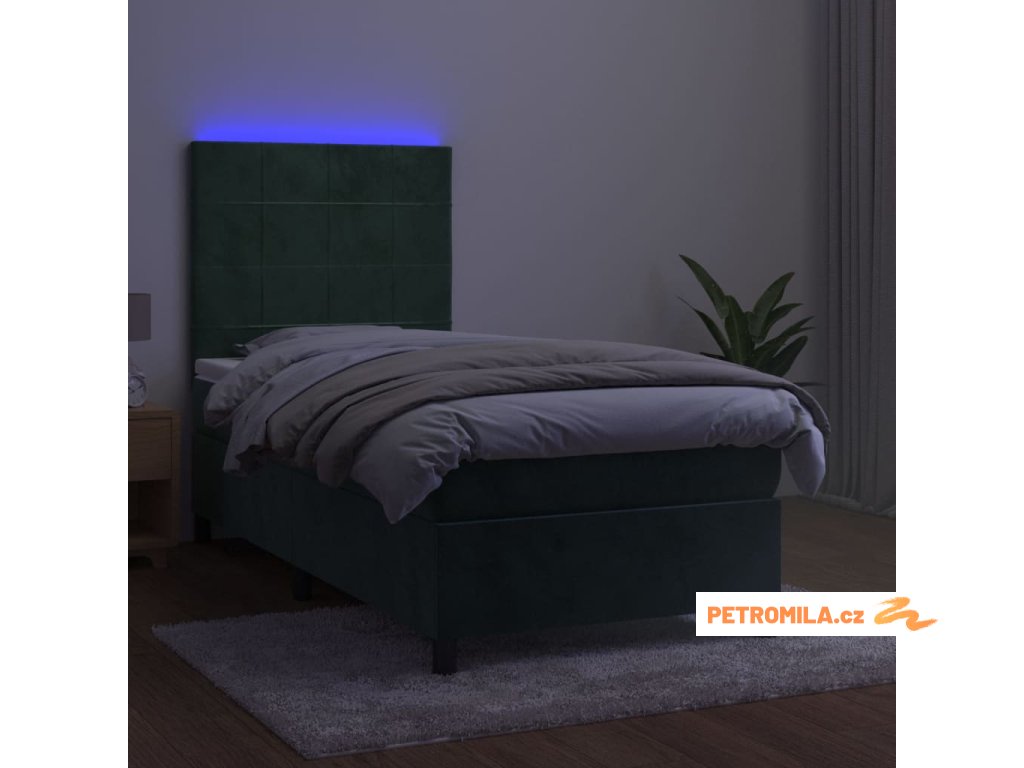 Box spring postel s matrací a LED tmavě zelená 100x200 cm samet