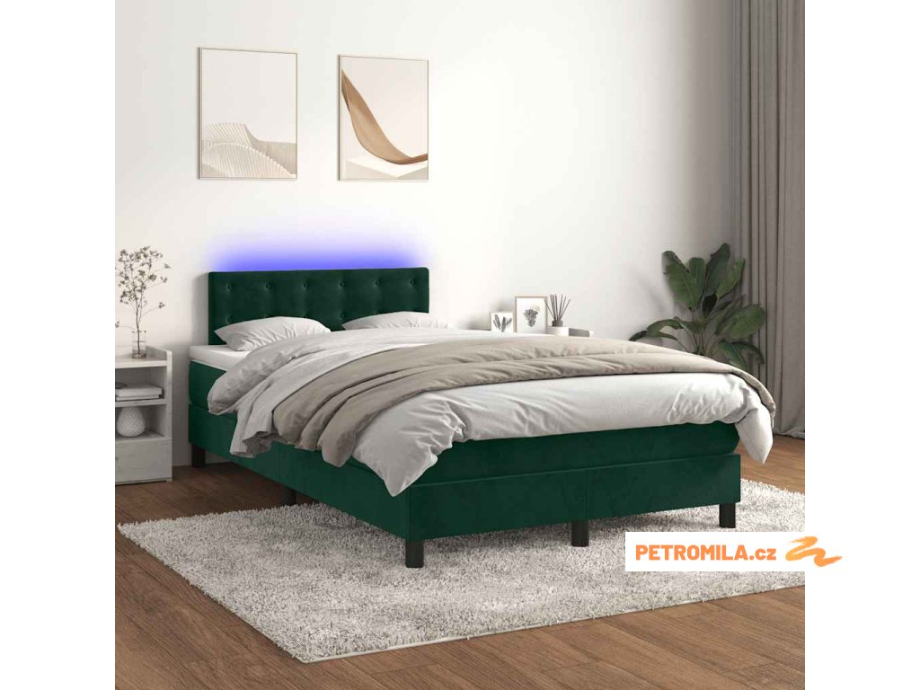 Box spring postel s matrací a LED tmavě zelená 120x200 cm samet