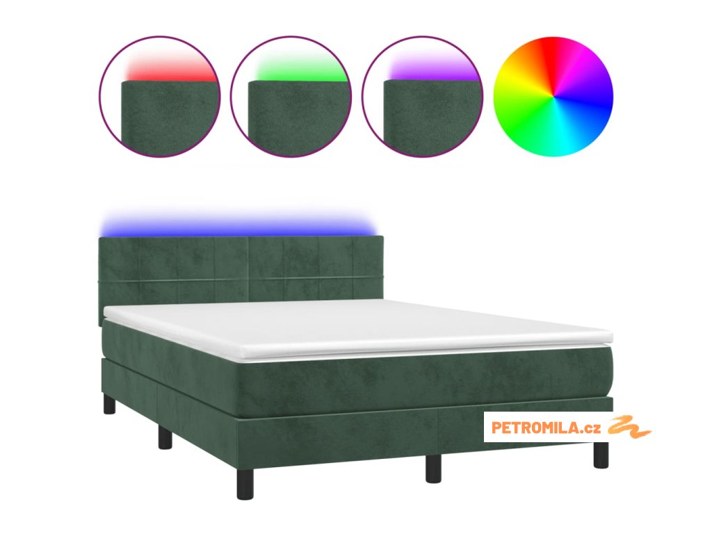 Box spring postel s matrací a LED tmavě zelená 140x190 cm samet