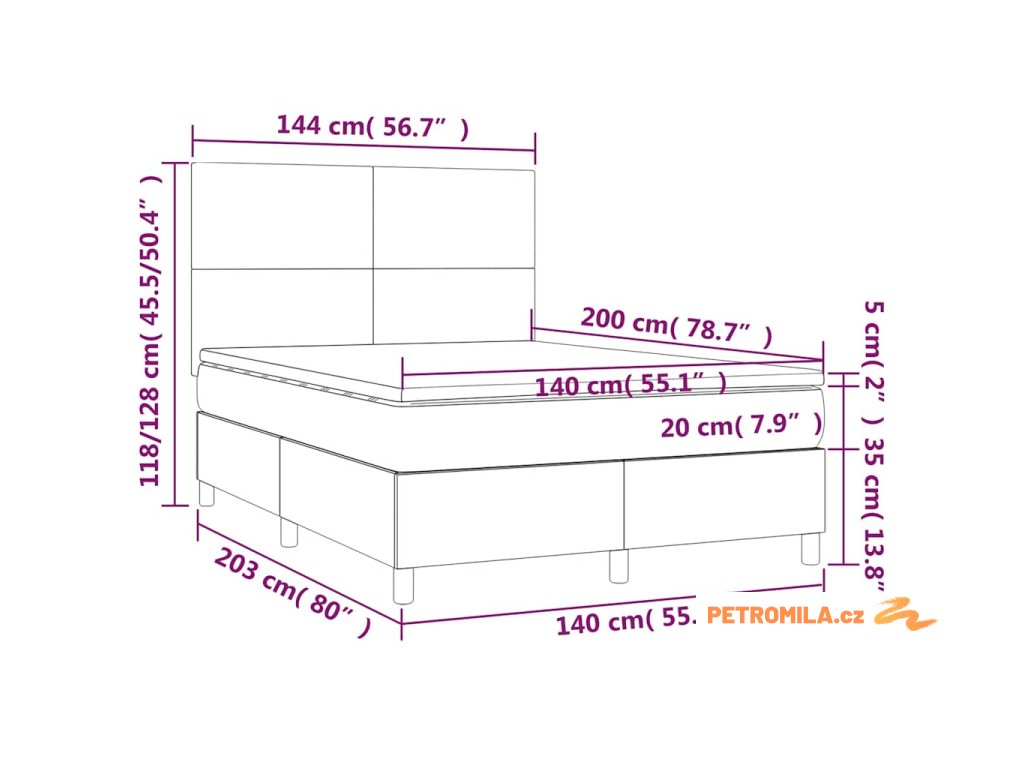 - Rozměry: 140 x 200 x 20 cm (Š x D x V)