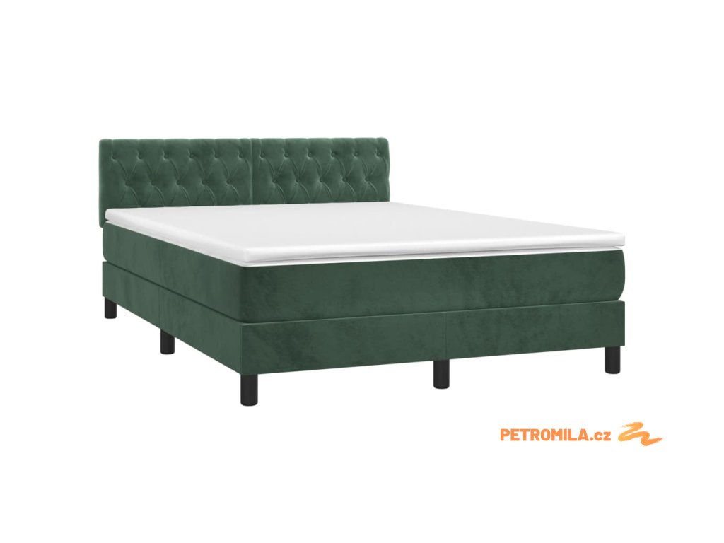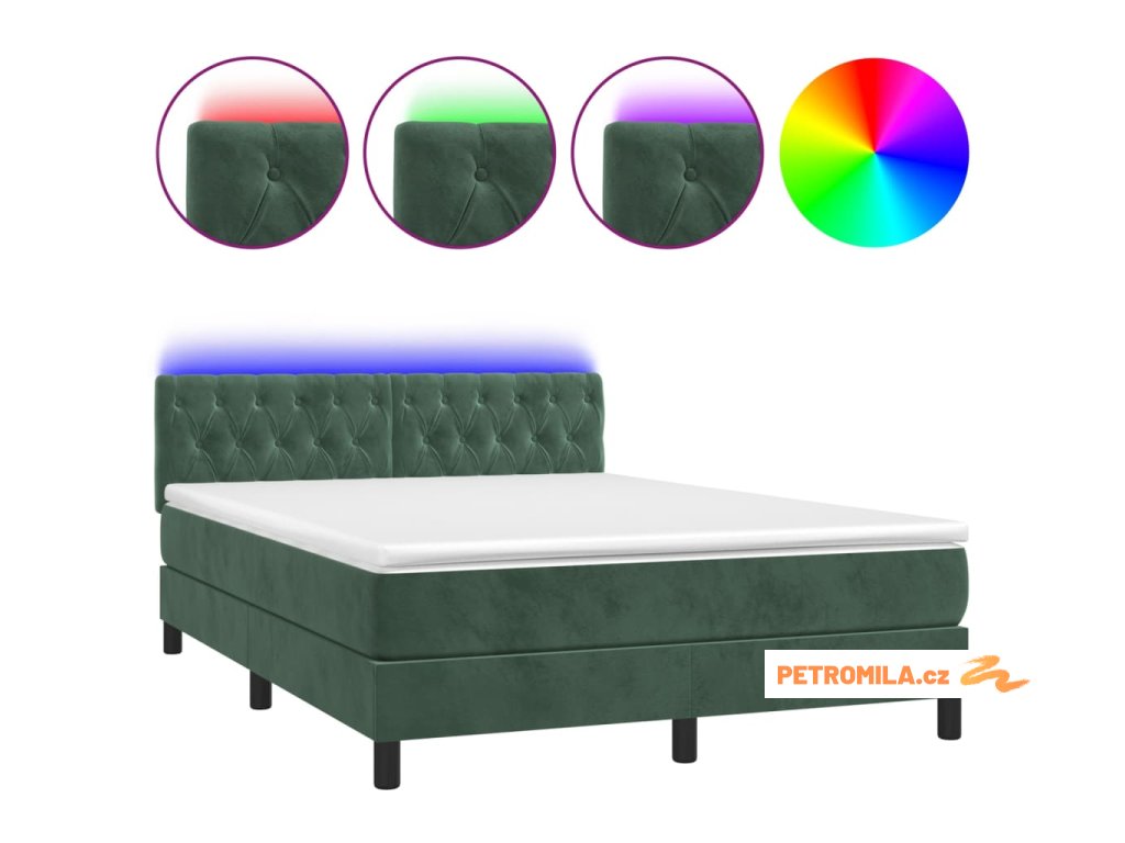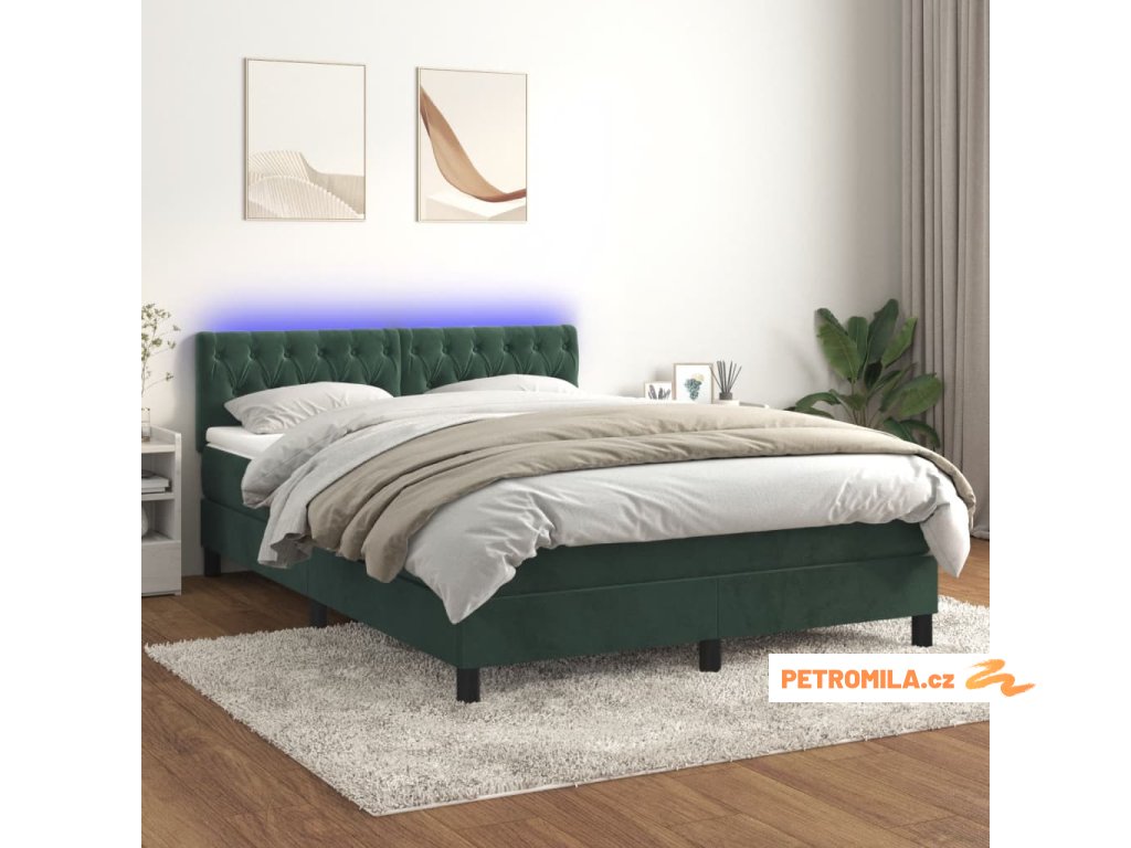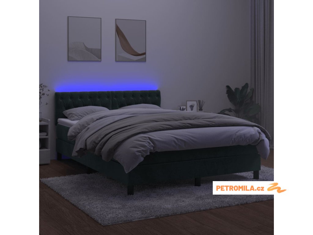 Box spring postel s matrací a LED tmavě zelená 140x200 cm samet